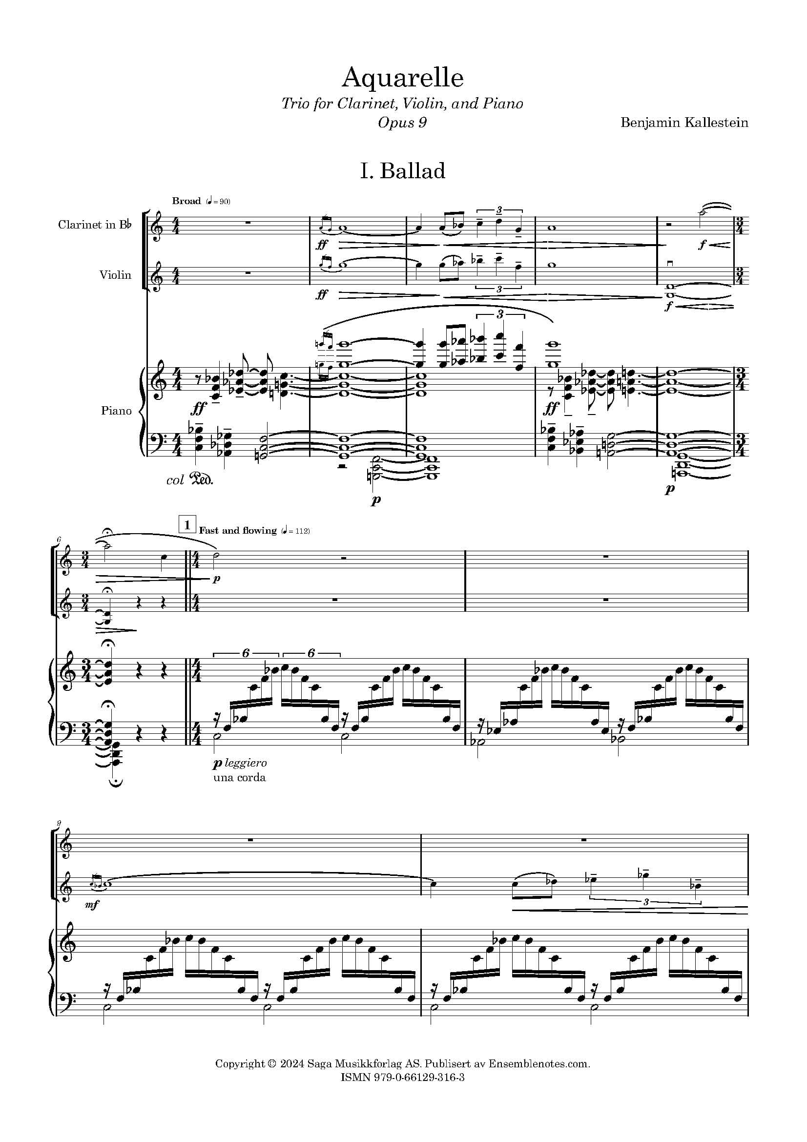 Aquarelle – trio for Clarinet, Violin, and Piano – Benjamin Kallestein