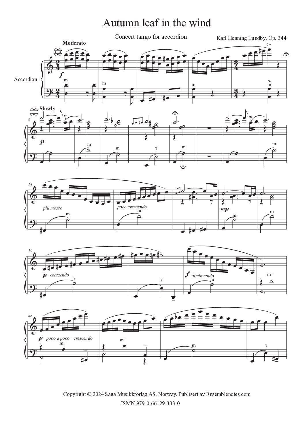 Autumn Leaf in the wind – konsert tango for trekkspill av Karl Henning Lundby