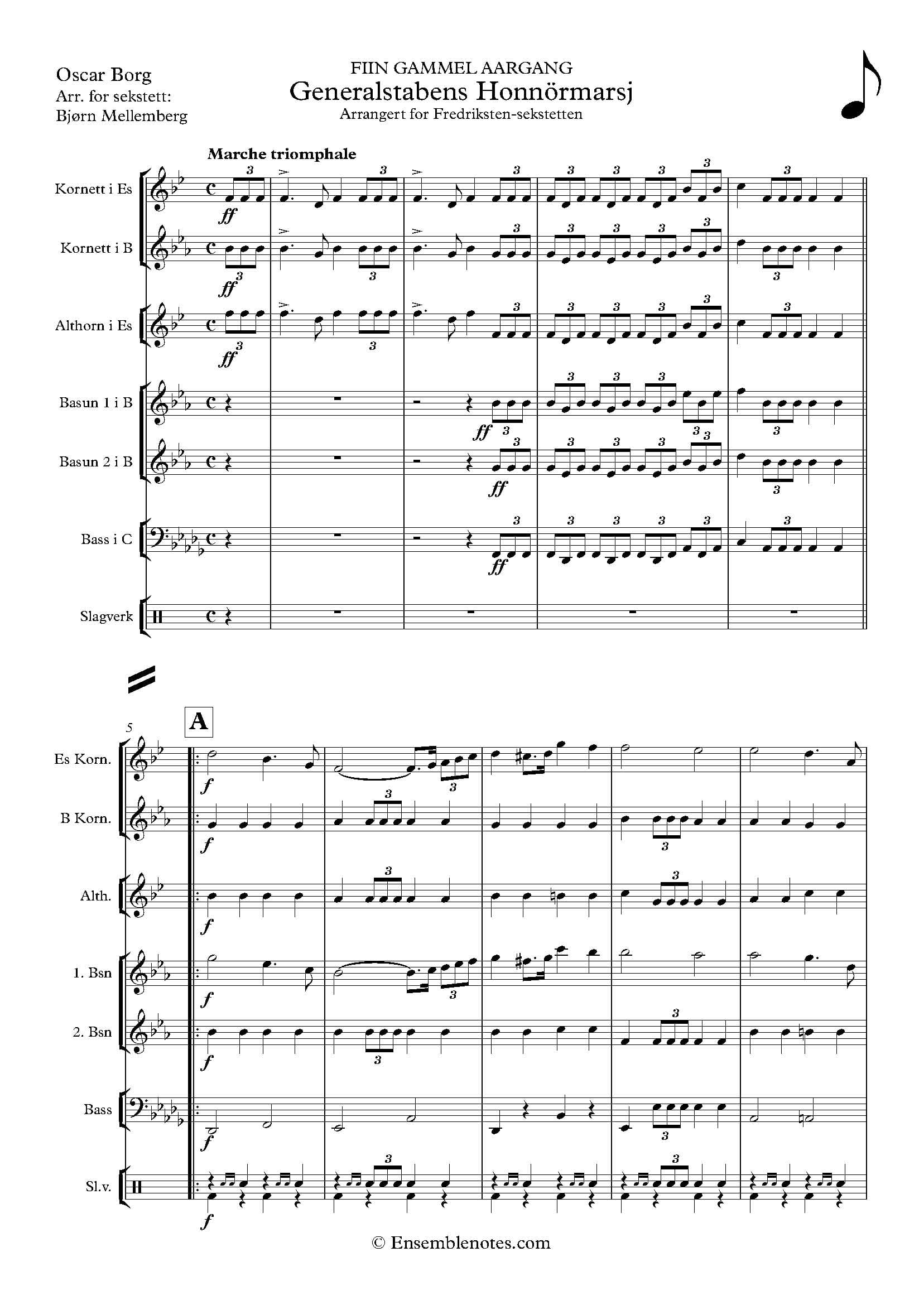 Generalstabens Honnørmarsj – Oscar Borg arr Bjørn Mellemberg for brass sekstett