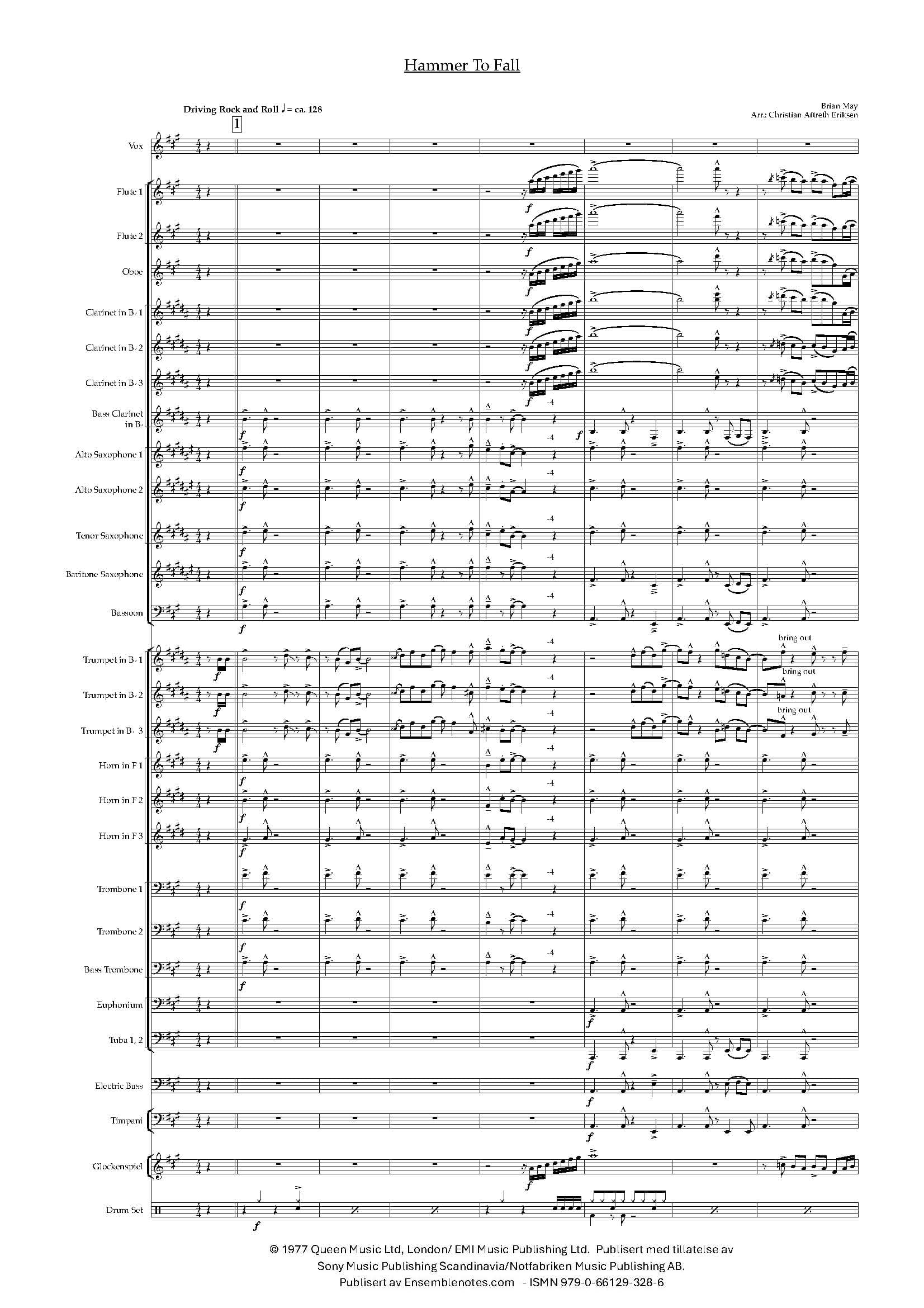 HAMMER TO FALL – Vokal med janitsjar (CB) – Queen-arr Christian Aftreth Eriksen (Originaltoneart)
